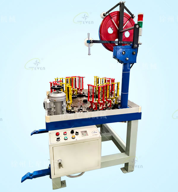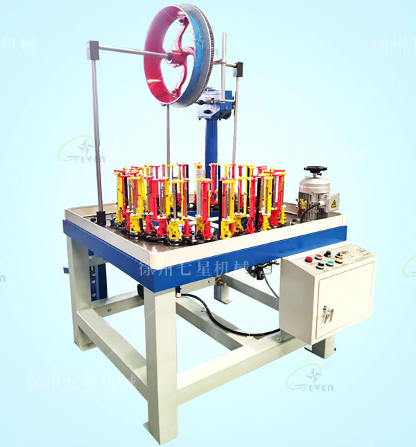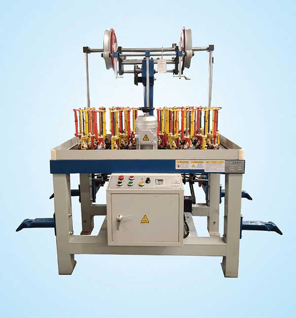 用途:織帶(鞋帶、服飾帶、松緊帶、波浪帶、滾邊帶、肩條帶等),測量繩、手提繩、拖車?yán)K、工具用繩,高空作業(yè)繩等各種繩帶的編織機。